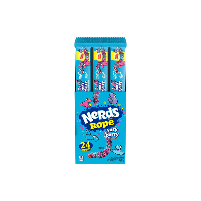 Crunchy Very Berry Nerds, sweet and sour together. All stuck on a soft, chewy rope like, forever. Until you come along and eat the whole thing. All veryest berryest Nerds on a string.